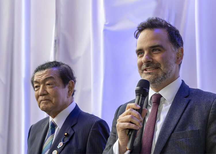 Yoshitaka Ito, ministre japonais en charge de l’Exposition universelle, Laurent Saint-Martin, ministre délégué au Commerce extérieur © Thomas Kimmerlin