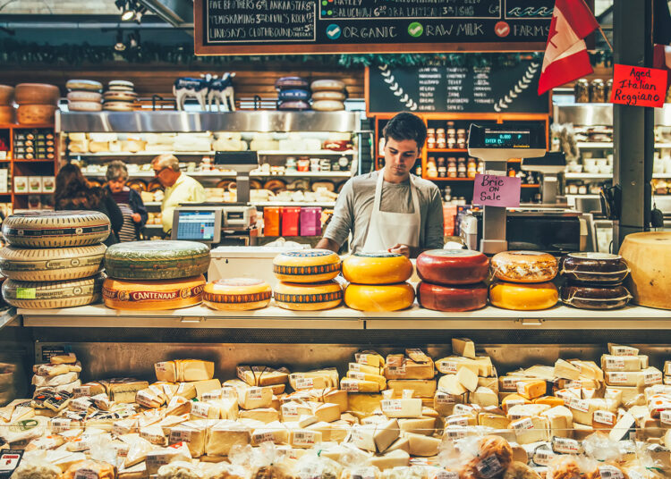 Dans l’agenda de Franck Riester sont notamment prévues, à Toronto les 16 et 17 avril, des visites au LCBO, la régie des alcools de l’Ontario (au Canada, l’importation d’alcools, très réglementées, est aux mains d’organismes publics ayant le monopole), ainsi qu’au marché Saint-Lawrence (notre photo en couverture), un lieu de distribution de fromages. C’est que dans le cadre du volet commercial du CETA, en vigueur depuis sept ans, les fromages et vins et spiritueux français sont exemptés de droits de douanes alors qu’ils subissaient, auparavant, des droits de douane pouvant aller jusqu’à 227 % pour les premiers, et de 10 % pour les seconds.